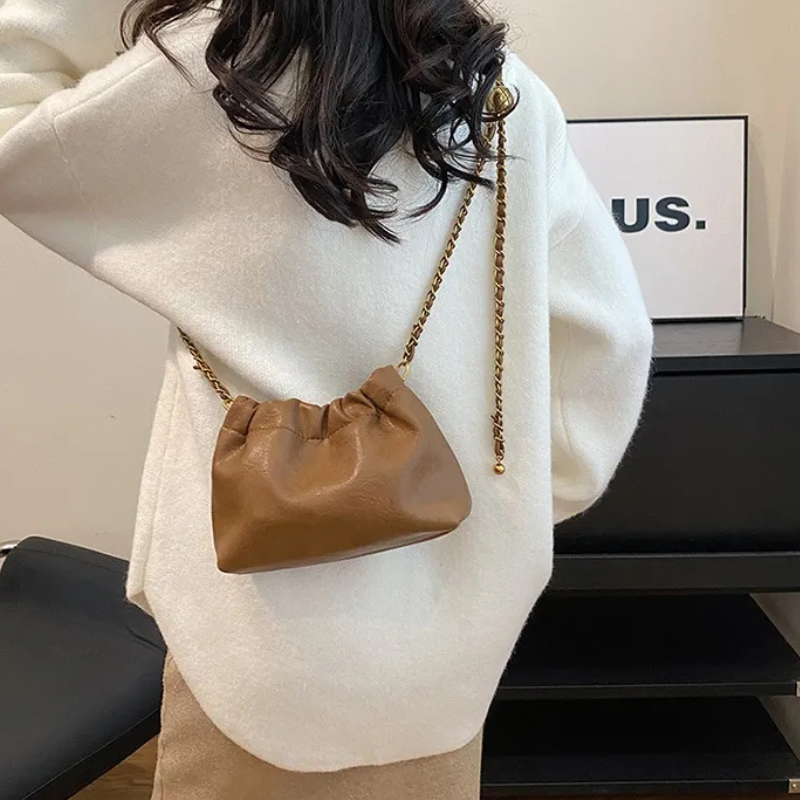 The Chain Bag combines modern sophistication with daily practicality. Crafted from high-quality synthetic leather, it delivers the smooth texture and refined look of genuine leather—without the maintenance. The signature chain strap, blending soft leather with polished metal, adds a chic touch that transitions perfectly from day to night. This bag complements every outfit with effortless elegance.